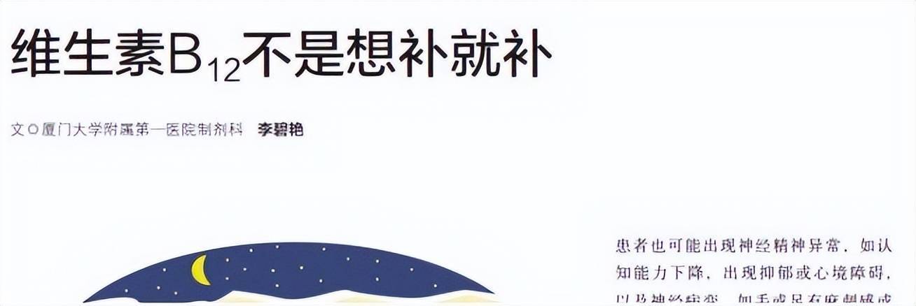 换句话说,惦念补过量实在是敷裕的,违反,不补才是问题。尤其是素食者、胃切除术后患者、遥远服用制酸药的老年东谈主,这三类东谈主群的阑珊风险更高,医师实在王人会提议稀奇补充。