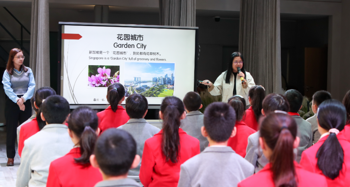 在“东说念主和讲坛”上,新加坡树德小学校长陈俊敬带来题为《联袂共建栽种将来》的主题陈说,详备栽种了新加坡栽种体系发展与将来打算。今日的海外贯通主题课程展示活动一样精彩纷呈。树德小学教师黄诗智、张丹龄为东说念主和街小学的学生们先容了新加坡的风土情面与树德小学的栽种造就普通,现场开展的互动小考验焚烧全场温雅,让学问传递变得活泼意旨。